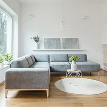 ワイドなコーナーソファで、贅沢なくつろぎを